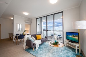 Located on 8th floor with expansive district views, this natural light- filled 2 bedroom+study apartment offers contemporary urban living and community conveniences all at once.