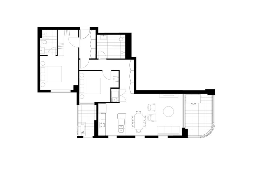 - Double-glazed glass all around the apartment for Noise and Heat Resistance