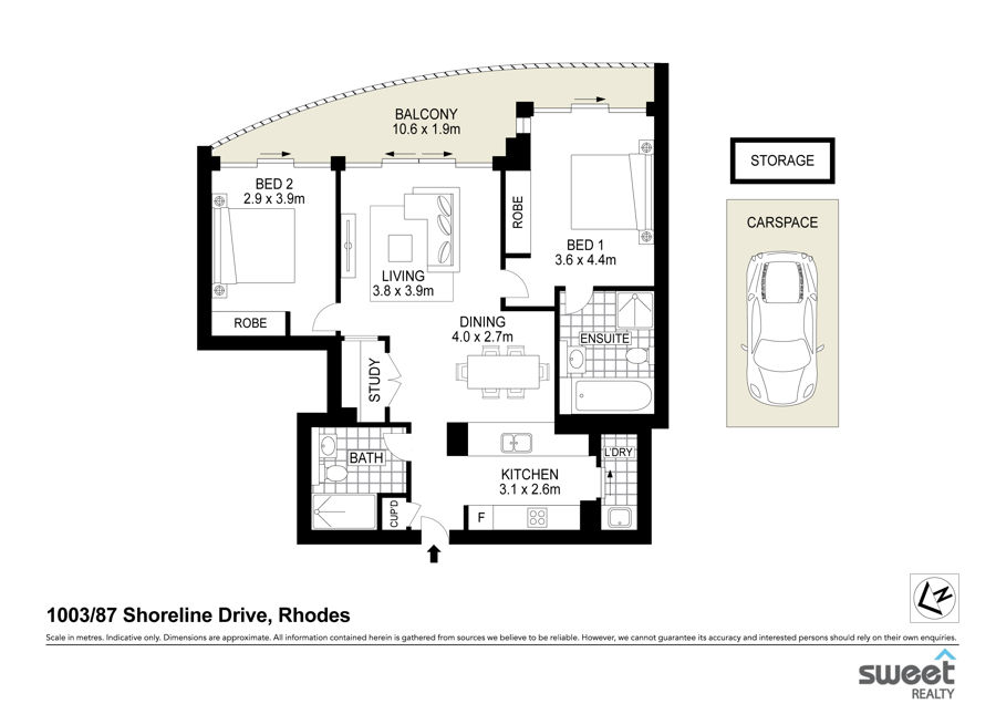 + 8 mins walk to Rhodes Central (Woolworth, dining & cafes).