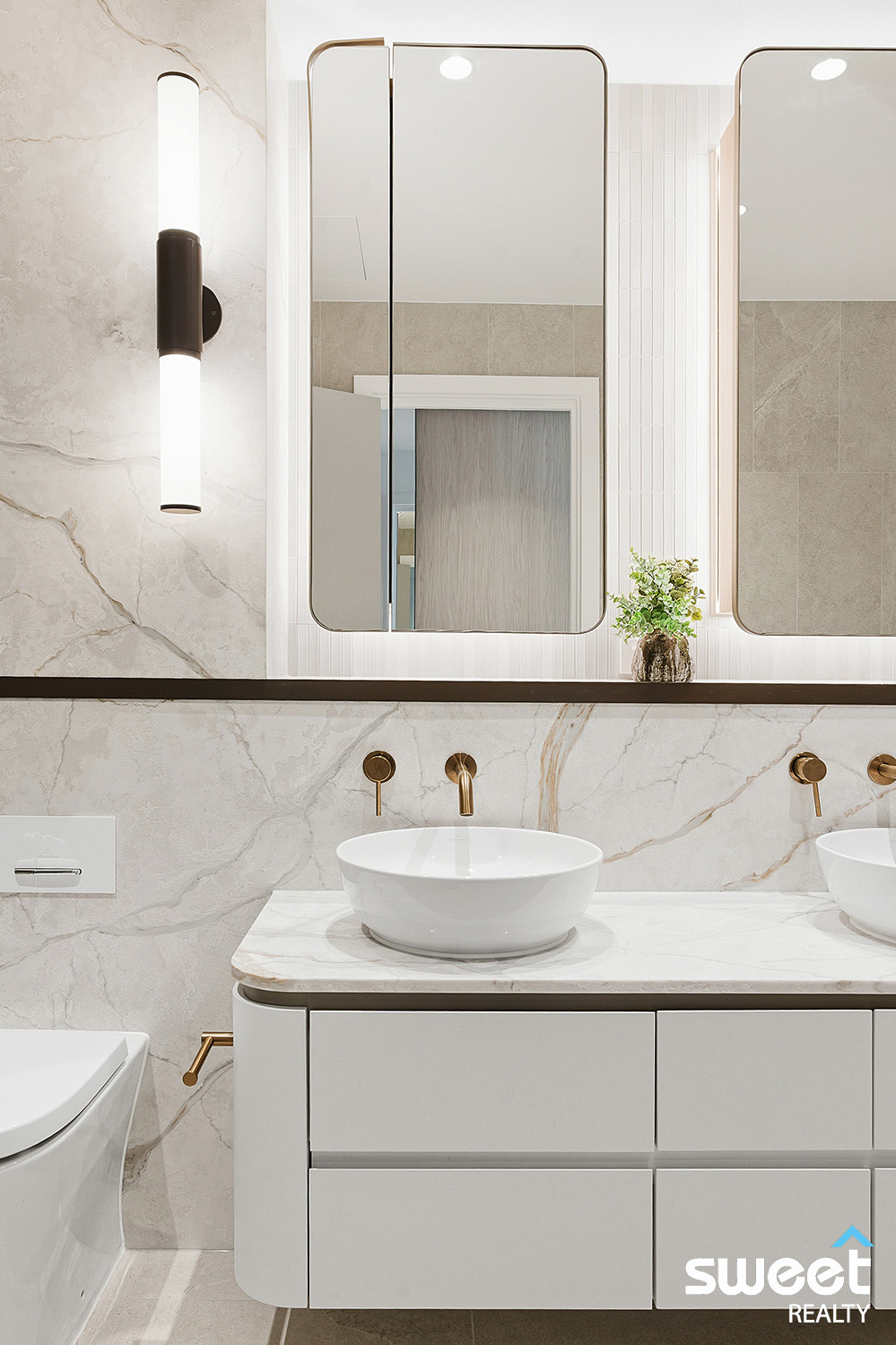 Accommodation comprises four oversized bedrooms, each capturing water views, plus a separate study room ideal for a refined home office or private retreat. The master suite is appointed with a luxurious ensuite featuring a designer double vanity and premium finishes, creating a five-star hotel ambience.
