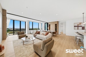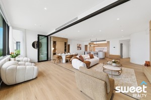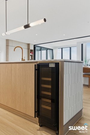 Designed to maximise its premier setting, the residence is wrapped in floor-to-ceiling glazing, inviting natural light and sweeping vistas across the water into every corner of the home. The expansive open-plan living and dining area flows seamlessly to a generous winter garden, creating an impressive space for entertaining against a backdrop of shimmering water and skyline.