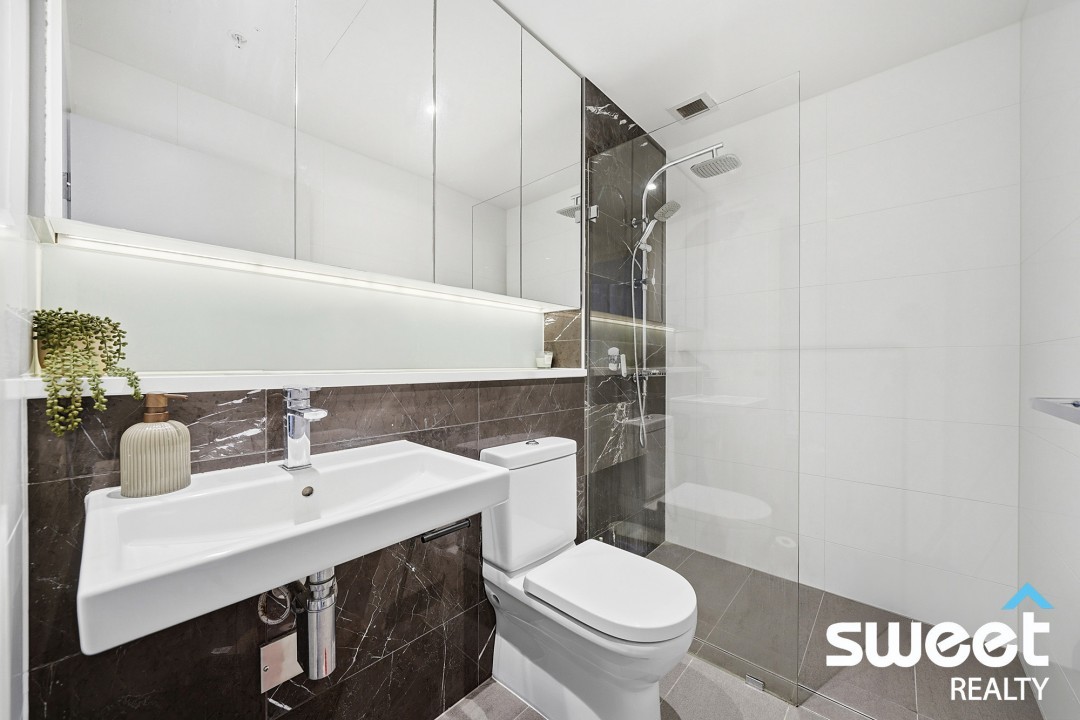 + Stylish bathrooms with premium finishes and mirrored cabinetry.