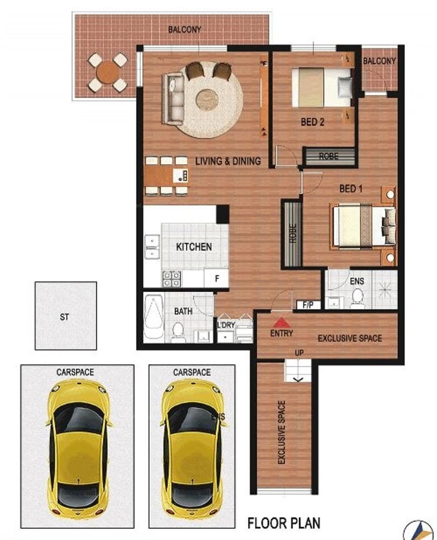 Modern 2 Bedroom + 2 Car space Unit in Silver Square Silverwater! Features include: