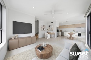 - Large open plan living and dining with ceramic floor tiles throughout & ceiling fan
